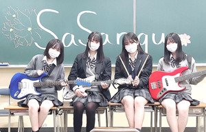 | ☆学生[初] 【バンド名】sasanqa 【メンバー名】Gt.+Vo.:いろは、Ba+Vo:まなか、Dr.:りの、Gt.:ゆい 【人数】4人 【ジャンル】コピー 【バンドPR】仲良く元気に楽しくやっています! 【宣伝したいこと】出れるLIVEは出来るだけ出ようと思います。 (インタビュー 2022/10/23) | |
