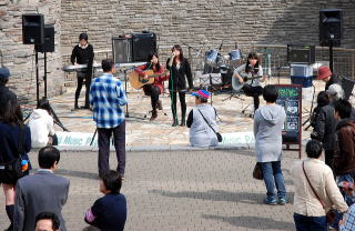 | 2バンド目になりますと、たくさんの人が集まり出しました。このあたりから多くの人たちが観覧いただきました。 |