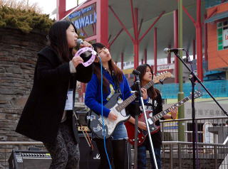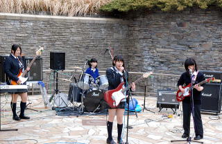 | 4バンド目は、有馬高校軽音楽部の1年生、初出演の「MuMu」です。高校生の中ではやっている曲を披露して下さいました。 |