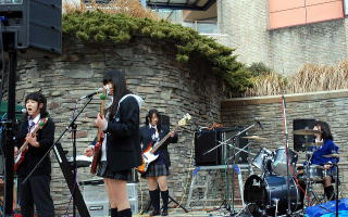 | 次も、有馬高校軽音楽部の1年生にのバンドです。「CHERISH」も初出演です。駅前を盛り上げていきます。 |