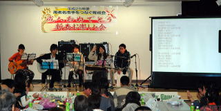 ■当団体のメンバーで今年二十歳を迎えたメンバーが在籍する「ラネコパムン」がチーム編成をして、同年代の皆様に向けて生バンドで曲を披露させていただきました。高校生の司会によりスタートです。 |